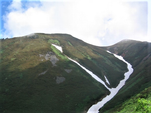 | 2004.6.27/曇り時々晴 早朝、相棒の加瀬氏と旭川を車で出発。国道273の中越から右に林道に入る。あとは標識に従って 約13 km行くと登山口である。なお、途中のゲートは普段は鍵がかかっており、あらかじめ森林管理署 (01658-2-2001)に連絡し鍵ナンバーを教えてもらわなければいけないので注意。 登山口には先行の車がすでに10台ほど駐車していた。8:10出発。小一時間ほどで樹林帯を抜け、展望 が開けて雲間に大槍とピークが見えてきた。登山道は明瞭な尾根の一本道である。その尾根上にある 岩峰の大槍を左に巻いて急斜面を登るとコル。そこから頂上はすぐである。10:30平らで広いピークに立つ。 無風。 残念ながら大雪の山並みは雲に隠れて見えない。眼前に峻険なピークの大槍と子槍が美しい。 ![]() ![]() (コースタイム) 登山口 1:20 見晴台 0:30 大槍 0:20 ニセイカウシュッペ山 1:35 登山口 |