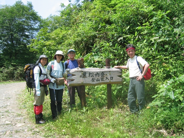 | (コースタイム) 登山口 1:21 黒松内岳 0:40 登山口 |
