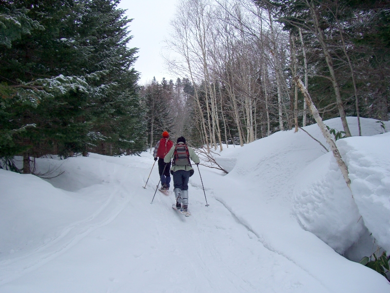| 2007.3.4/曇りのち晴 国道脇に車を止めて、林道に入り右手の尾根に取り付く。正面にピークを見ながら忠実に尾根を辿って いく。 低山だが、上の方は広いスロープになっており、十分楽しめる。ピークから黄金山がよく見える。 ![]() ![]() ![]() (コースタイム) 国道駐車地点 1:35 当別丸山 0:35 駐車地点 |