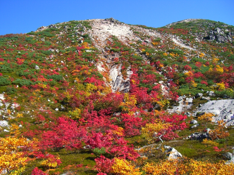 | 2007.10.06/快晴 ポピュラーな山だけど、初めてである。さすがに三連休、紅葉シーズンとあってすごい人出だ。吃驚。 晩秋とはいえ暖かく日差しが強い。登山口の五色温泉から二山まとめてピストン。 紅葉が鮮やかでとても美しい。帰りに五色温泉で汗を汗を流し大満足。 ![]() ![]() ![]() (コースタイム) 五色温泉登山口 1:00 イワオヌプリ 0:40 登山口 1:40 (途中昼飯) ニセコアンヌプリ 0:55 登山口 |