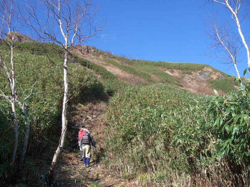 | 2007.11.04/晴 ニセコの山から見ると尖っていて意外に目を引く山。 初冬とはいえ、春のような穏やかな陽気。美唄山岳会の仲間と登山口で一緒になるが、お先に出発 する。 しばらくは、単調な林道歩き。7合目からようやく山らしくなる。直下を急登し、ピークに飛び出る。 さすがに一等三角点だけあって、標高のわりには展望は素晴らしい。 ![]() (コースタイム) 登山口 2:10 昆布岳 1:33 登山口 |