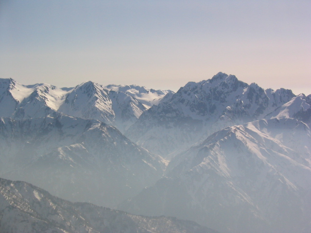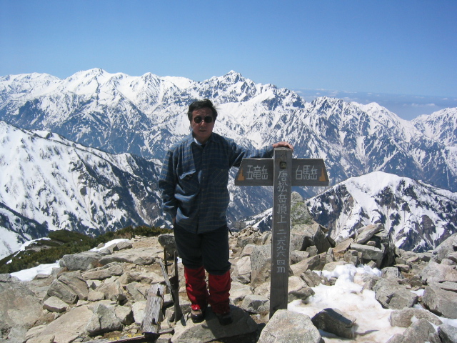 現れて雪山らしくなった。前方に唐松岳、左右に雄大な白馬三山、五竜、鹿島槍の山並みを見ながら高度を上げて