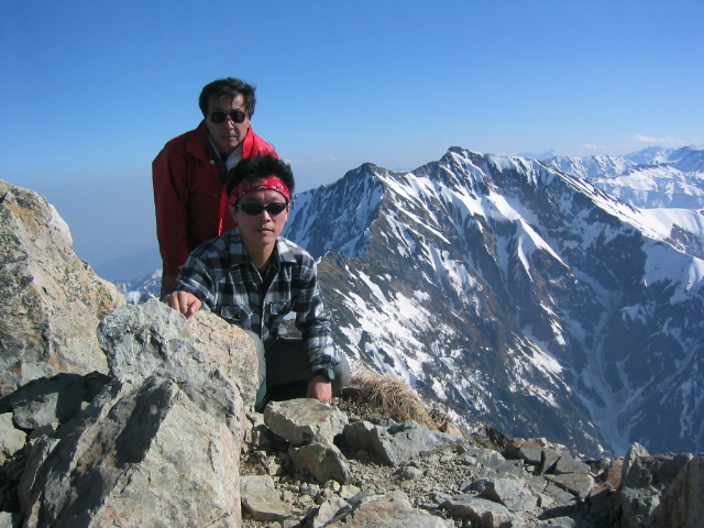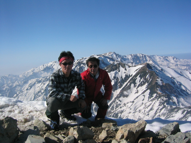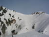 ピーク直下の20mくらいの雪壁。雪は腐っていてそう難しくはないが、慎重に通過してピークに立つ。