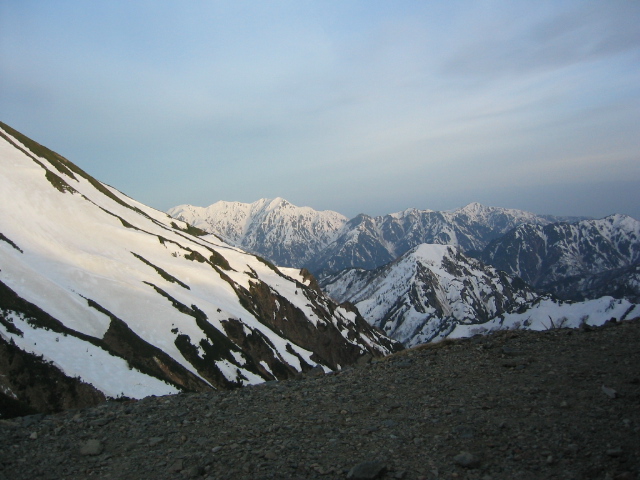 過ごし、2,300mくらいの最低コルまで急降下する。ここからまた雪混じりのガレ場の苦しい登りだ。