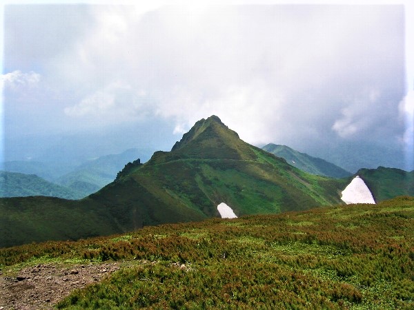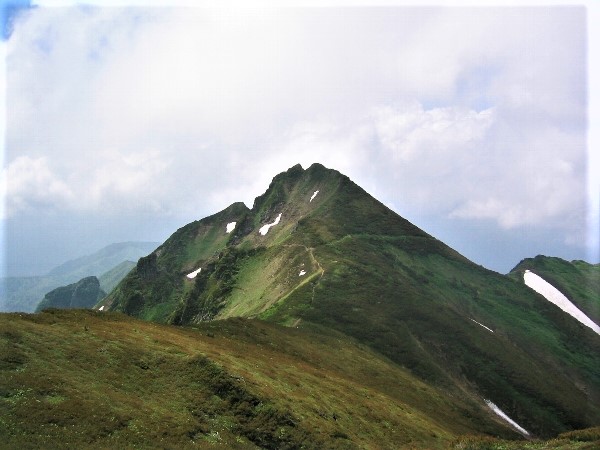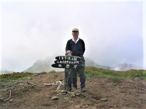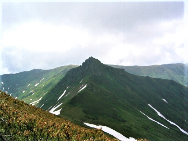 | 2004.6.27/曇り時々晴 早朝、相棒の加瀬氏と旭川を車で出発。国道273の中越から右に林道に入る。あとは標識に従って 約13 km行くと登山口である。なお、途中のゲートは普段は鍵がかかっており、あらかじめ森林管理署 (01658-2-2001)に連絡し鍵ナンバーを教えてもらわなければいけないので注意。 登山口には先行の車がすでに10台ほど駐車していた。8:10出発。小一時間ほどで樹林帯を抜け、展望 が開けて雲間に大槍とピークが見えてきた。登山道は明瞭な尾根の一本道である。その尾根上にある 岩峰の大槍を左に巻いて急斜面を登るとコル。そこから頂上はすぐである。10:30平らで広いピークに立つ。 無風。 残念ながら大雪の山並みは雲に隠れて見えない。眼前に峻険なピークの大槍と子槍が美しい。 ![]() ![]() (コースタイム) 登山口 1:20 見晴台 0:30 大槍 0:20 ニセイカウシュッペ山 1:35 登山口 |