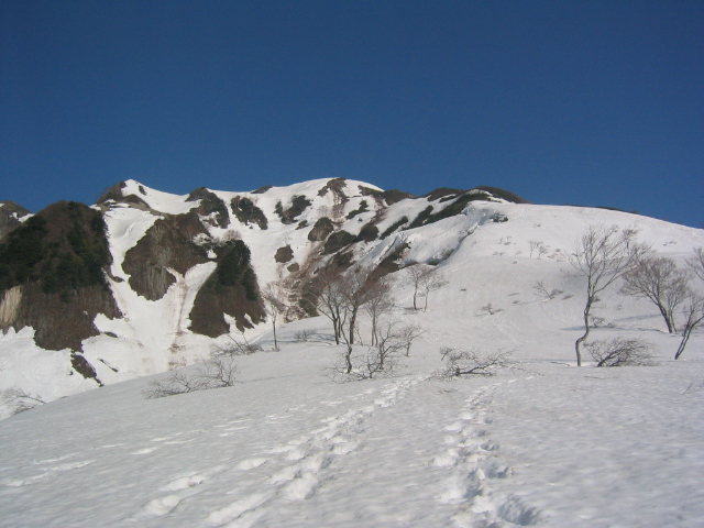 4月28日 雨飾荘〜(車14分)〜登山口 ― 荒菅沢 ― 笹平 ― 雨飾山 ― 笹平