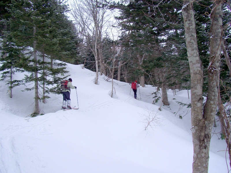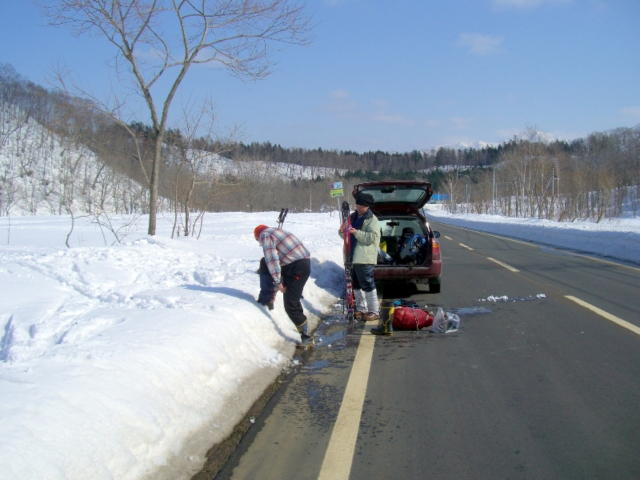 | 2007.3.4/曇りのち晴 国道脇に車を止めて、林道に入り右手の尾根に取り付く。正面にピークを見ながら忠実に尾根を辿って いく。 低山だが、上の方は広いスロープになっており、十分楽しめる。ピークから黄金山がよく見える。 ![]() ![]() ![]() (コースタイム) 国道駐車地点 1:35 当別丸山 0:35 駐車地点 |