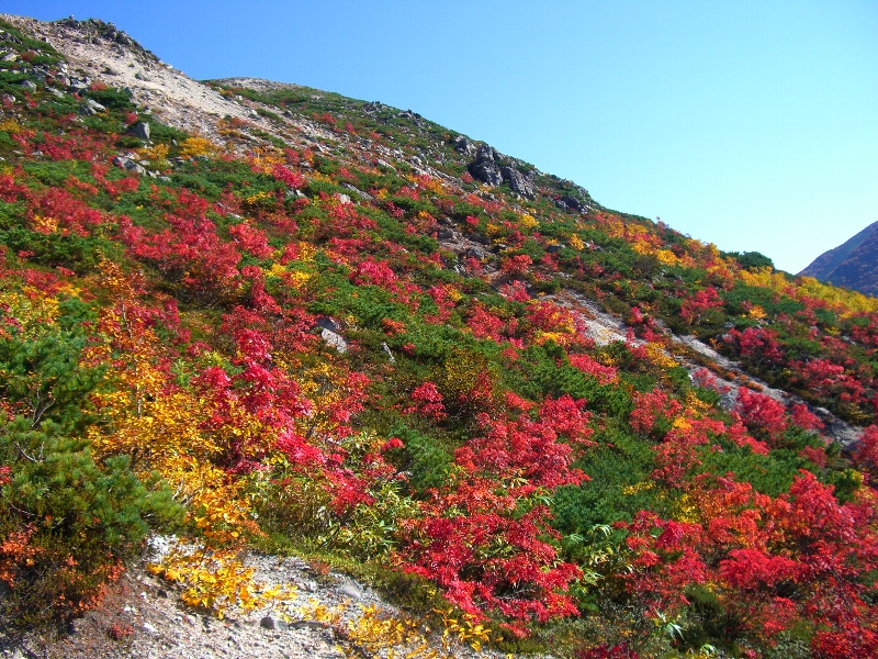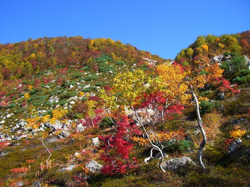 | 2007.10.06/快晴 ポピュラーな山だけど、初めてである。さすがに三連休、紅葉シーズンとあってすごい人出だ。吃驚。 晩秋とはいえ暖かく日差しが強い。登山口の五色温泉から二山まとめてピストン。 紅葉が鮮やかでとても美しい。帰りに五色温泉で汗を汗を流し大満足。 ![]() ![]() ![]() (コースタイム) 五色温泉登山口 1:00 イワオヌプリ 0:40 登山口 1:40 (途中昼飯) ニセコアンヌプリ 0:55 登山口 |