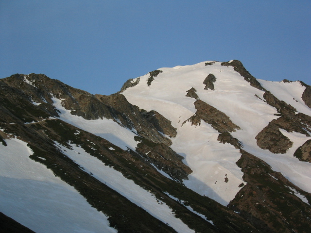 稜線に出ると、唐松岳はもう目の前だ。予定よりも早く11:14ピークに到着。