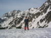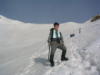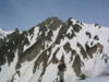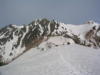 ピーク直下の20mくらいの雪壁。雪は腐っていてそう難しくはないが、慎重に通過してピークに立つ。