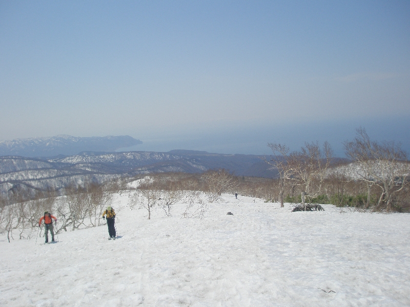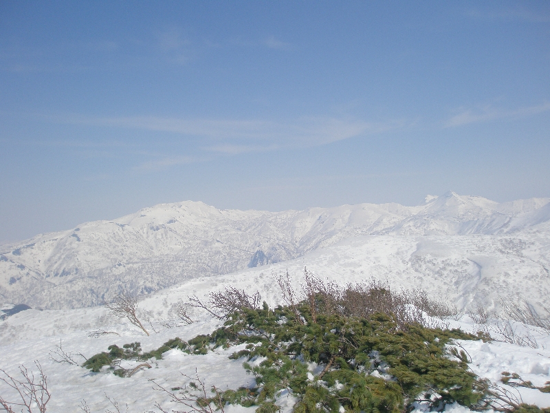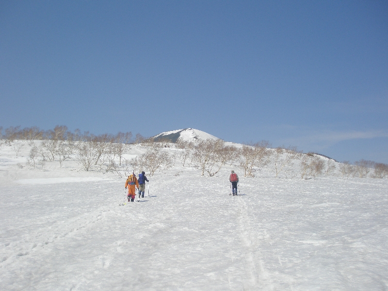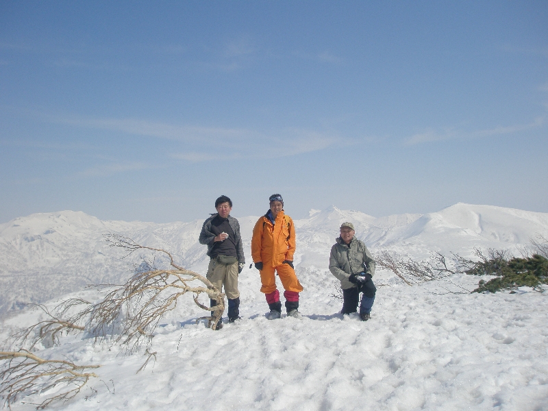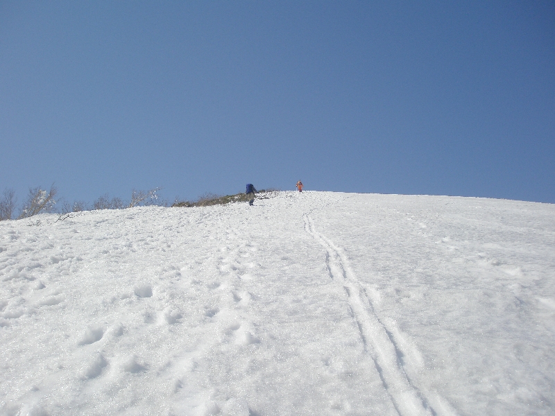 | 09.04.29/快晴 昨年10月以来の暫らくぶりの山行。絶好の春山日和。 幌の林道は雪解けが進み、標高260m地点まで車で入ることができた。駐車帯は車で一杯だ。 ここからスキー、大阪山を巻くように林道に沿って行く。体が重い。3時間15分で浜益御殿。 目指す雄冬山が手に取るように望まれる。 御殿からコルに一気に下る。帰りの登り返しが辛そうだ。しばらく平坦なコルを行く。 雄冬山の直下の壁は急斜面。右手の斜面ををジグを切りながら我慢の登り。 御殿から1時間43分。登頂。 大パノラマに感動。暑寒別岳、群別岳と奥徳富岳、浜益岳、浜益御殿。まるで白い屏風のようだ。 帰路は、雄冬山の大斜面をスキー滑降。御殿からも樹間を長い滑降。久しぶりに雪山を満喫。 ![]() ![]() YouTubeで動画をご覧ください。 (コースタイム) 幌林道登山口 3:15 浜益御殿 1:43 雄冬山 1:43(途中昼食) 御殿 0:55 登山口 |